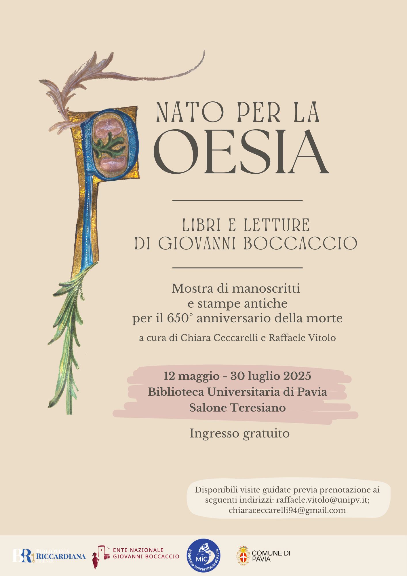 [ConsDipStudiUmanistici] Mostra su Giovanni Boccaccio 12 maggio -30 luglio 2025