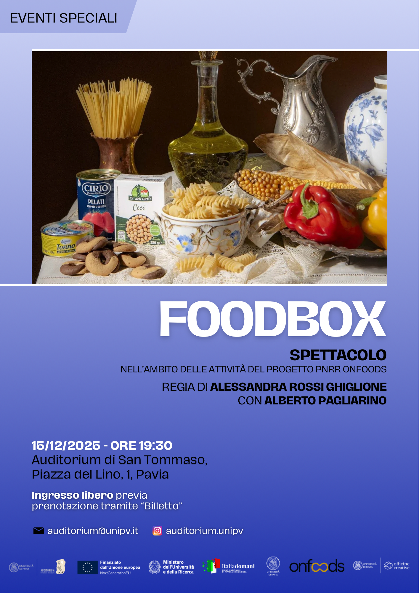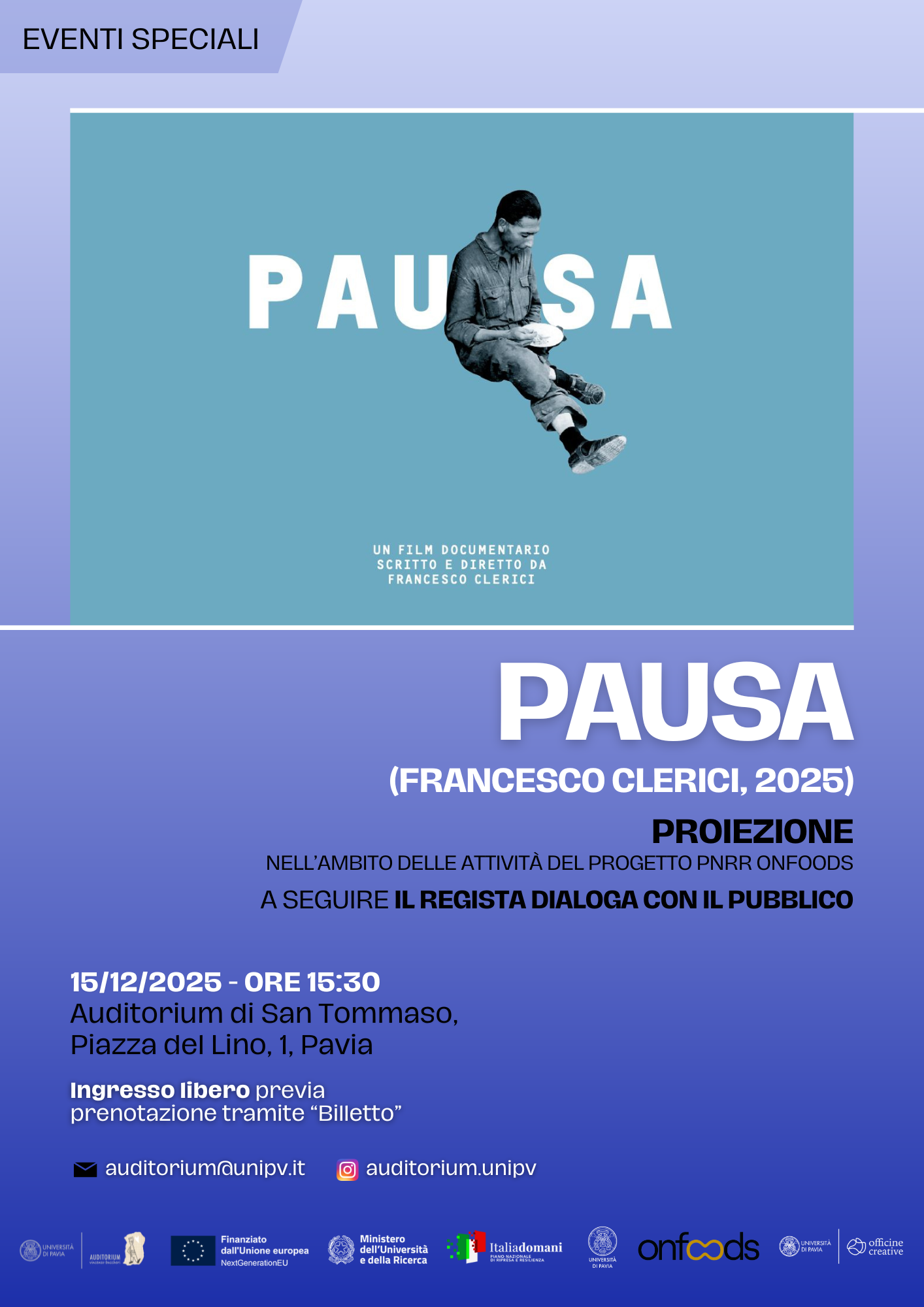 Info e prenotazioni: *auditorium a unipv.it <auditorium a unipv.it>*