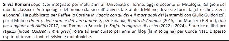 e 2024). È autrice di libri per ragazzi (Iliade, Odissea, I miti greci),