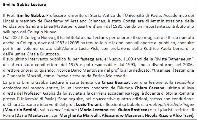 ricevuto da Enrica Malcovati». La prima Emilio Gabba Lecture è stata tenuta