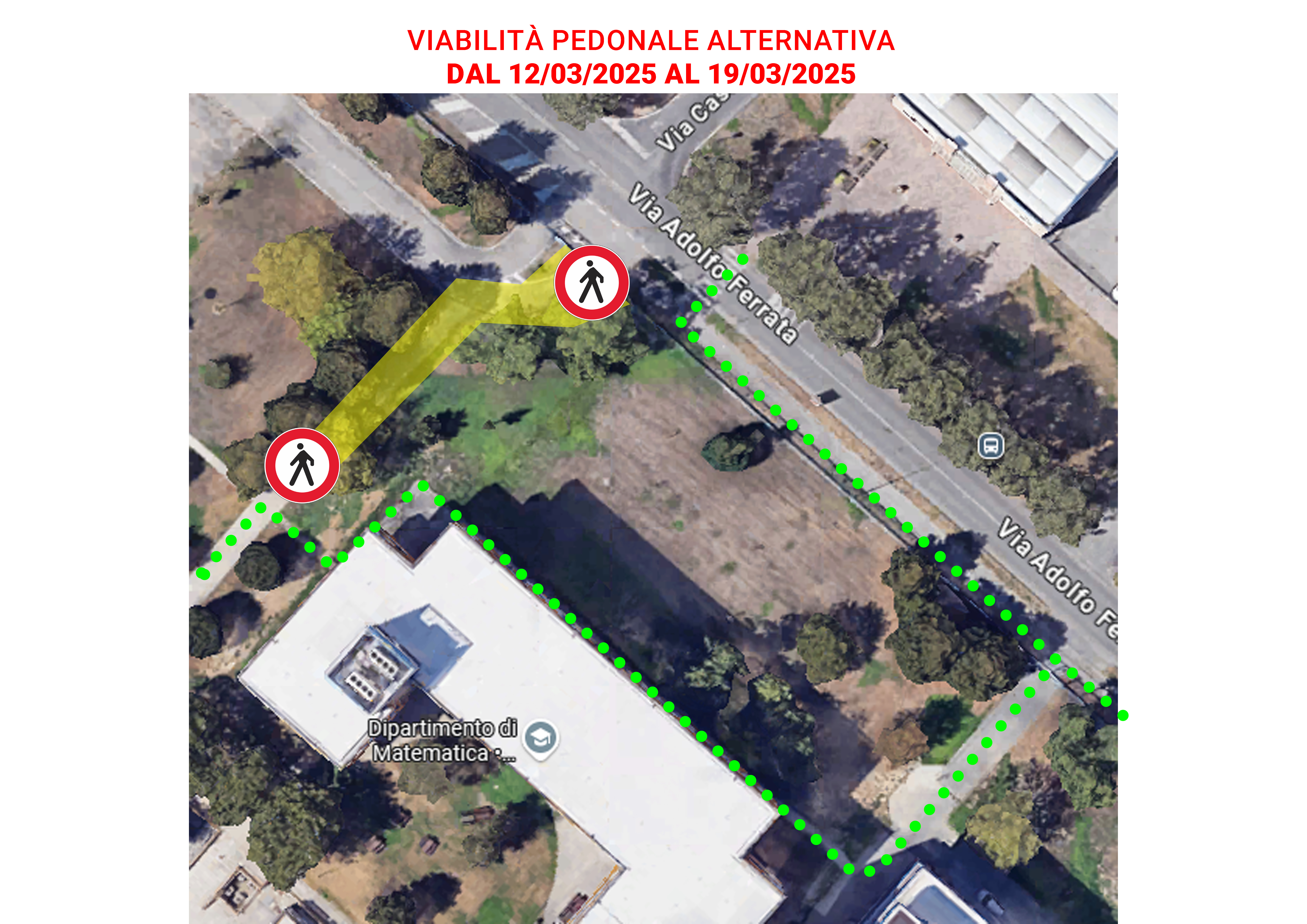 via Ferrata 5B e indirizzare gli utenti lungo il marciapiede che costeggia